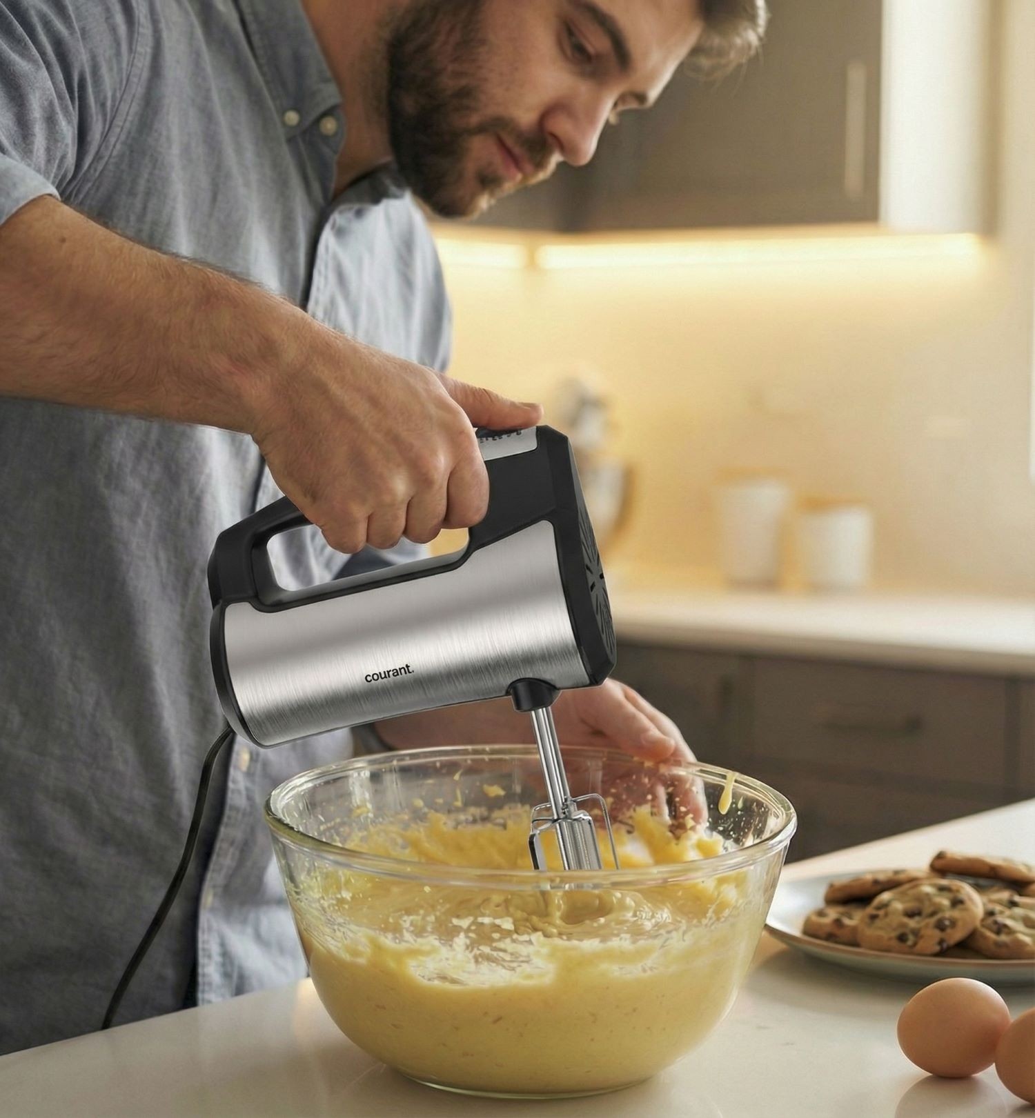 250W 5-Speed Hand Mixer with Storage Stand for Mixer, Beaters and Hooks - Stainless Steel CHM-1580ST Be the first to review this product In stock $49.99 Description Courant's 1580-ST-Speed Hand Mixer in sleek Stainless Steel -is the perfect addition to any modern kitchen! With five easy-slide mixing speeds, this mixer accommodates all of your favorite recipes. The powerful 250-watt motor handles all of your baking needs, while the turbo power function provides maximum speed for tough mixing tasks. Featuring an eject button, the beaters and hooks eject easily with the push of a button for quick and easy clean-up. And when you're finished using it, simply pop it in the dishwasher for hassle-free cleaning. Upgrade your baking game with the Courant 1580-ST-Speed Hand Mixer. With its sleek stainless steel design and powerful motor, it's sure to become your go-to kitchen appliance for all of your baking needs! Quantity: Add to Cart Add To Wishlist Add To Compare Email to a Friend Register Product DOCUMENTS & OTHER DOWNLOADS User's Guide Warranty Spec Sheet Key Features In The Box 5 Easy-Slide Mixing Speeds Powerful 250 Watts Motor Turbo Power Function Eject Button Dishwasher Safe Hand Mixer Set of Beaters Set of Dough Hooks Storage Stand User Manual