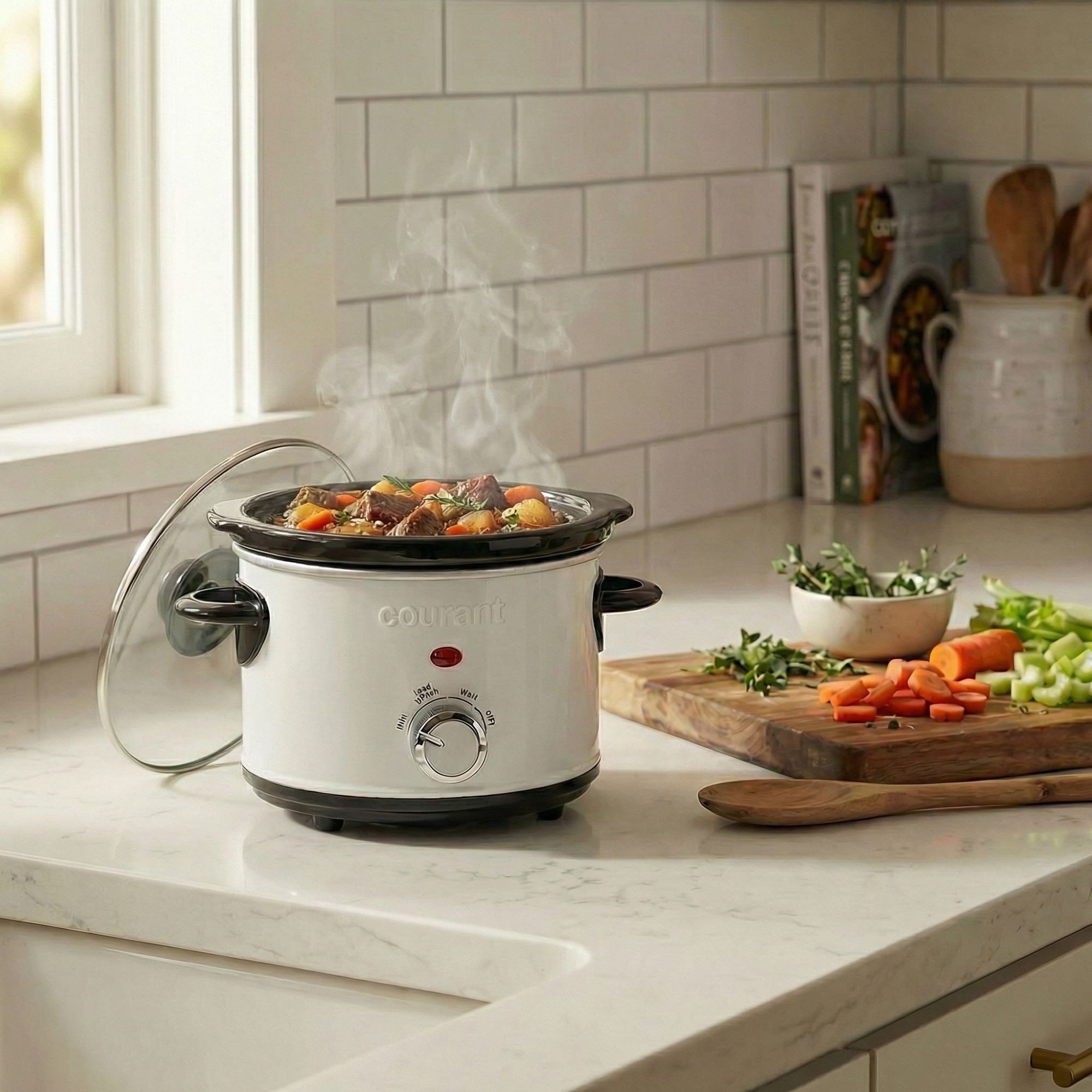 Choose the desired heat setting and let the slow cooker do the rest